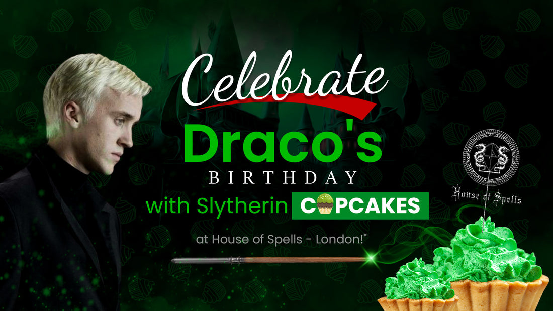 Join us for a special birthday celebration for Draco Malfoy on Monday, 5 June, at House of Spells in London! From 11am to 5pm, you can also enjoy a free Slytherin cupcake with any purchase over £20. At House of Spells, we are huge fans of Draco Malfoy, especially his hidden sensitive nature, which made us confident he will make a U-Turn away from the Dark Arts. Therefore, we love collecting Draco-inspired items and Slytherin merchandise to remind us of the Dark Arts' allure without compromising our good nature. You can bring your friends and family to the Birthday party and enjoy Draco & Slytherin collectables such as the Draco Malfoy wand (available both with or without a special Ollivanders Box), Slytherin crest varsity jacket, robe, wand stand, handbag, watch, and many others! Also, even if you come by yourself, you will meet other fans of Draco Malfoy and the Slytherin crew! At the end of the day, we will all be there to celebrate the birthday of one of the most iconic characters in the Harry Potter universe.