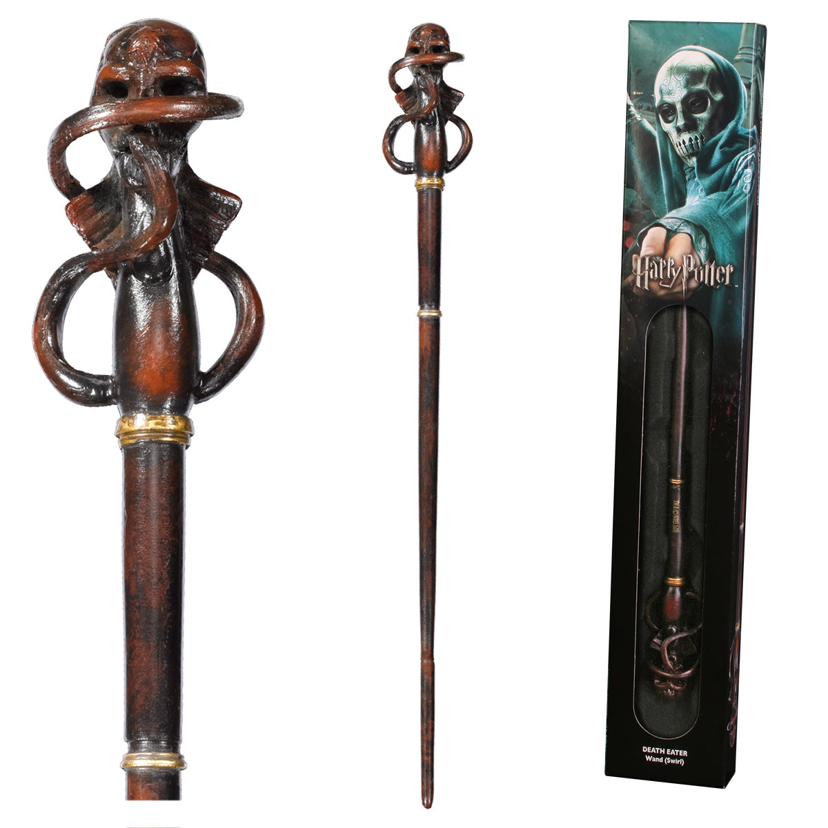 The Death Eater Swirl wand in a standard window box. The wand inside is identical to the Collector’s version but without the Collector’s box.