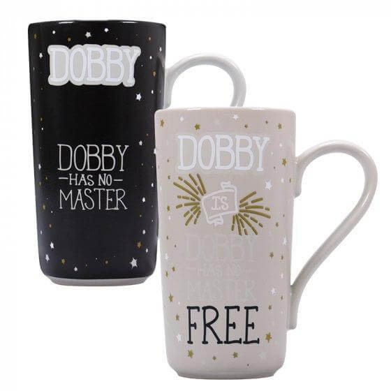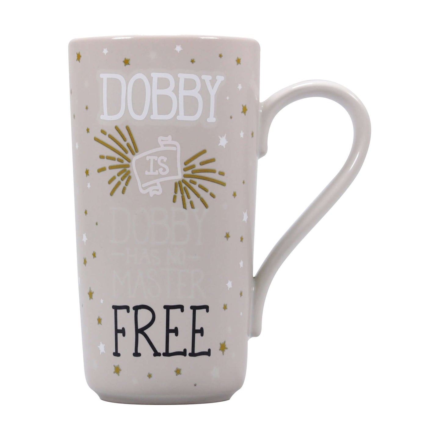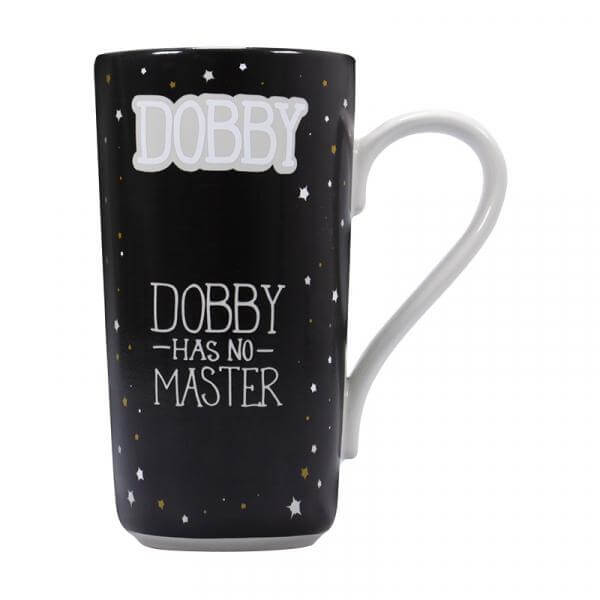 Harry Potter Dobby Mug Latte Heat Changing Mug is sure to get your morning off to a magical start! Cold, the mug features a black background with white and gold stars, as well as the words, "Dobby has no master", while the reverse features Dobby's unmistakable outline in white against the same starry background. When hot liquid is poured in, the black background transforms to a light grey, revealing the words, "Dobby is free" on the front as well as lovely character art of everybody's favorite house elf on the back. Once the drink is finished the mug returns to its original state as it cools. Packaged in a printed gift box, it makes a lovely gift for any Harry Potter fan with a soft spot for Dobby.