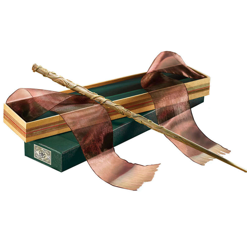 The Hermione Granger wand, brightest witch of her age, Gryffindor, and best friend to Ron and Harry. Complete with Ollivanders box, with velvet-feel material and a decorative ribbon. Name clip not included.