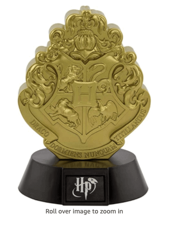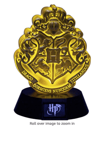 This free-standing 3D light is in the design of the Hogwarts school crest. It’s given a golden finish and lights up when switched on. The light stands at 10cm tall and is battery powered (2xAAA batteries needed - not included).