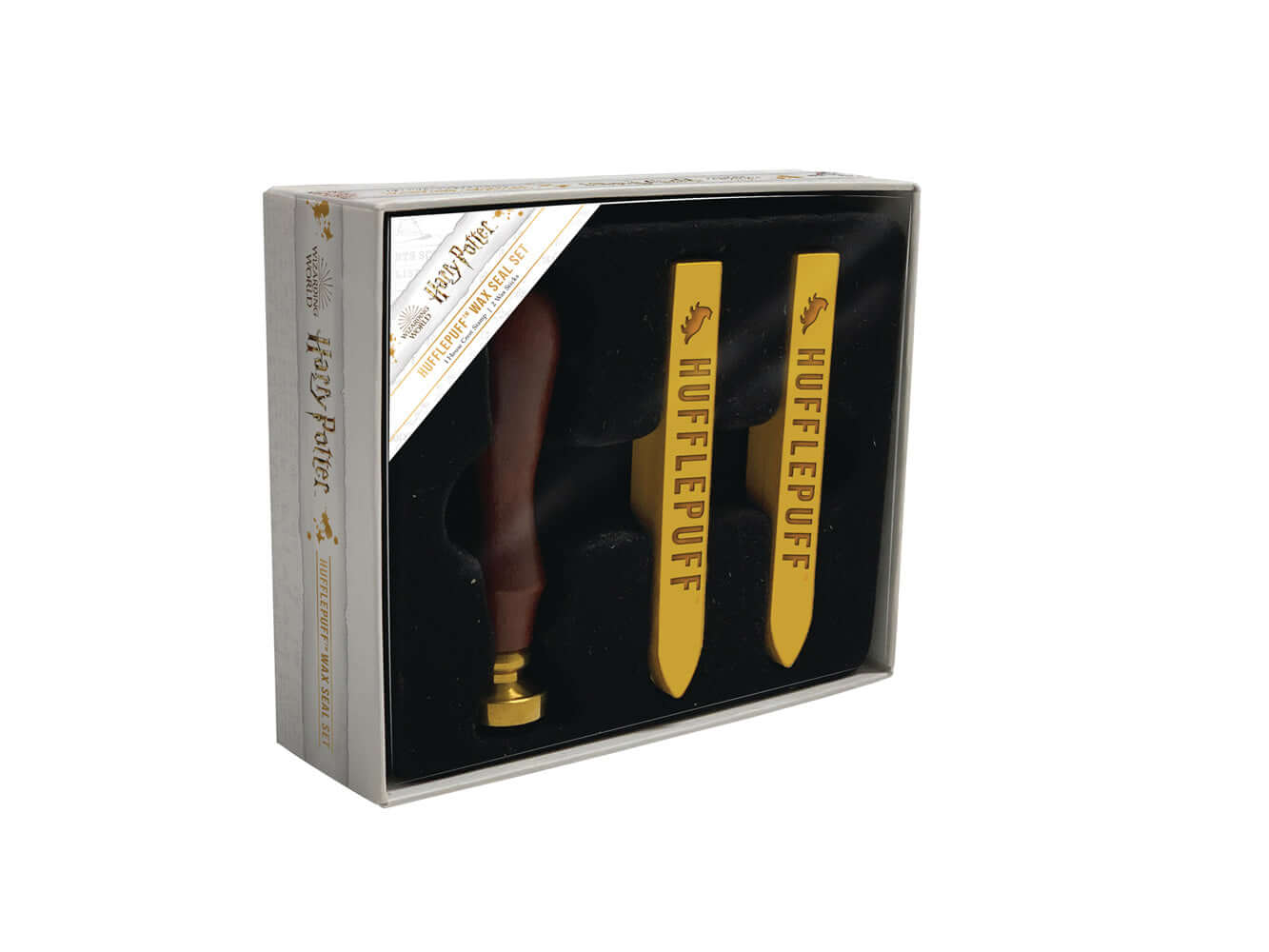 Seal letters and envelopes in the name of your Hogwarts House with this Hufflepuff Wax Seal Set. As a proud Hufflepuff, use these wax seals to decorate packages and personalize your stationery. Inspired by the famous Harry Potter film series, this amazing collectible comes with a high-quality copper stamp and two wax sticks in the house colors of yellow!