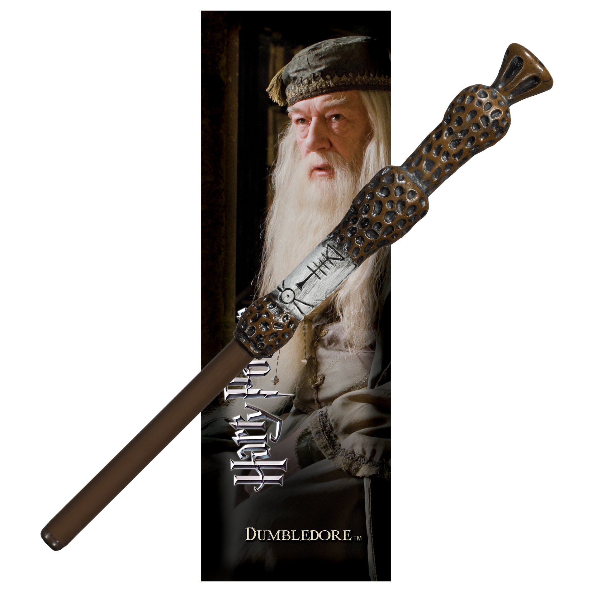 Dumbledore’s infamous wand offered as a pen, complete with a bookmark featuring Albus Dumbledore himself.