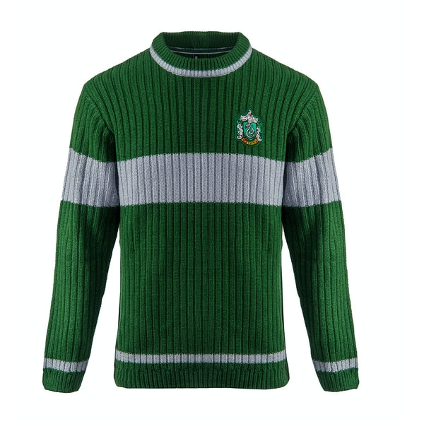 Keep yourself warm and comfortable during Quidditch match with this Slytherin House Quidditch Jumper. A lovely recreation of the film prop, flaunt your love for the House of Tom Riddle with this green and silver jumper that features a stunning embroidery of a serpent -the emblematic animal of the House- on the left chest.