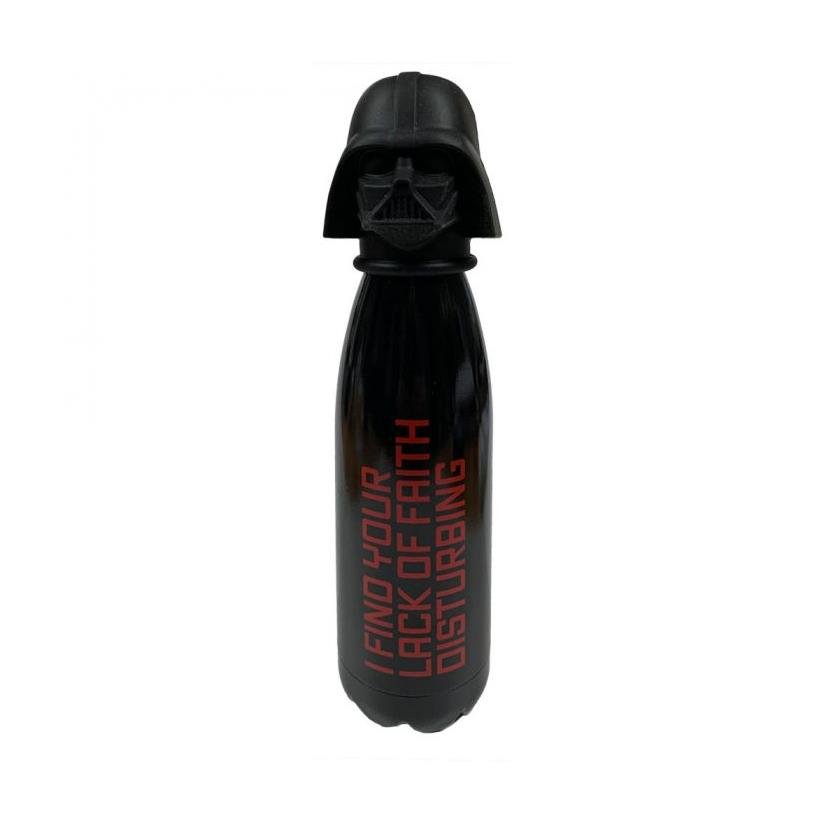 This fantastic metal Water Bottle is an officially licensed product and comes with a 3D lid in the shape of everyone's favourite Sith Lord, Darth Vader. The bottle is made from double-walled stainless steel to keep your drinks the right temperature for longer and comes with a carabiner clip for attaching to your bag. The 3D moulded lid features an iconic image of Darth Vader. Not dishwasher or microwave safe.
