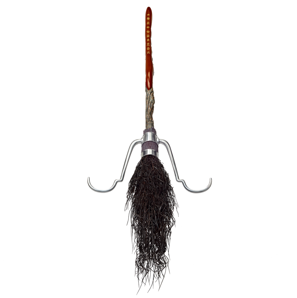 A spectacular Firebolt broom replica, complete with handle details and a wall mount. Harry received a Firebolt as an anonymous present from his godfather, Sirius Black.