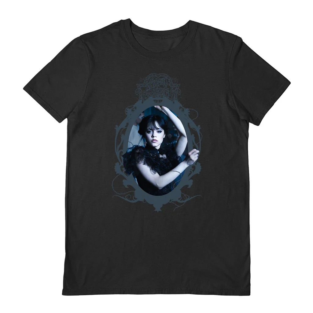 Unisex black T-shirt inspired by the iconic Wednesday dance scene.