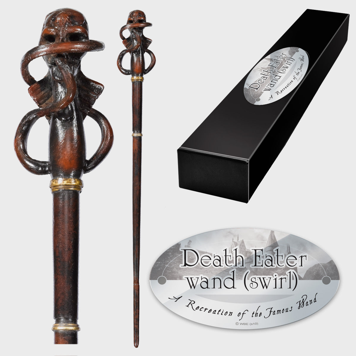 食死徒的魔杖呈旋涡状设计,类似于黑魔标记。角色盒内含姓名夹。