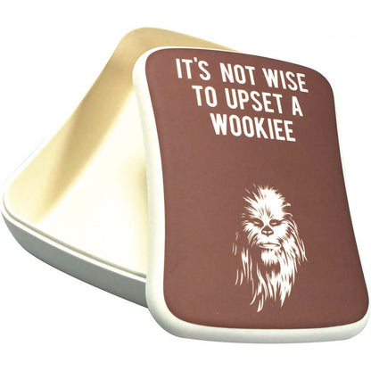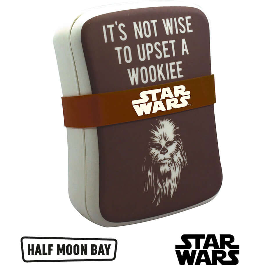 这款星球大战丘巴卡午餐盒非常适合工作、上学、野餐和挂伍基人!这款环保产品由竹纤维制成,而不是塑料,上面印有丘巴卡的出色人物设计,以及《星球大战第四集:新希望》中本·克诺比的原话“我不该惹恼伍基人”。这款午餐盒由两部分组成 - 棕色丘巴卡设计的盖子和对比色的奶油色底座 - 它们由硅胶带固定在一起,硅胶带的设计类似于丘巴卡标志性的伍基人磨碎机。这款硬壳竹盒可在银河系冒险期间保证午餐安全,是送给星球大战粉丝的绝佳礼物。