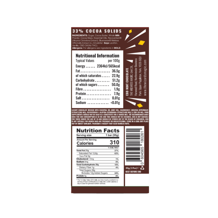 Wizards CBD 巧克力适合那些想要在漫长的一天结束后尽情放松的人。我们在 CBD 巧克力中加入了精油、超级食品提取物和 50 毫克 CBD,带来只有英国制造的 Magic Chocolate才能带来的丝滑、顺滑和奶油般的口感。
